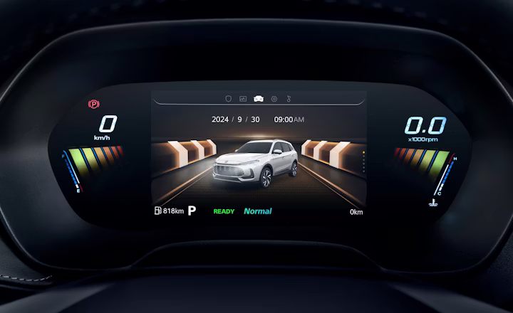 Przejrzyste i stylowe wnętrze zostało zaprojektowane w ciemnej tonacji oraz dopracowane pod kątem komfortu. Zastosowanie miękkich materiałów i precyzyjny montaż zapewniają wysoki poziom jakości. Wszystkie detale, takie jak dźwignia zmiany biegów i 3-ramienna kierownica, zostały starannie wykonane z najlepszej jakości materiałów. Poziomy ekran dotykowy wraz z przyciskami tworzą schludną całość, jednocześnie umożliwiają szybki dostęp do wybranych funkcji.