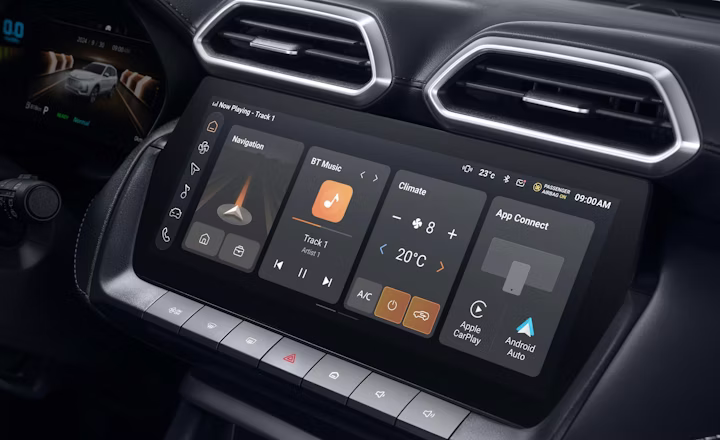 MG ZS prezentuje nowy, najnowocześniejszy design, płynnie łącząc kompaktowe proporcje SUV-a z 17-calowymi felgami aluminiowymi i światłami LED, zapewniając idealne połączenie sportowego ducha i mocy w każdym szczególe.TechnologiaNajnowsza technologia w standardzie